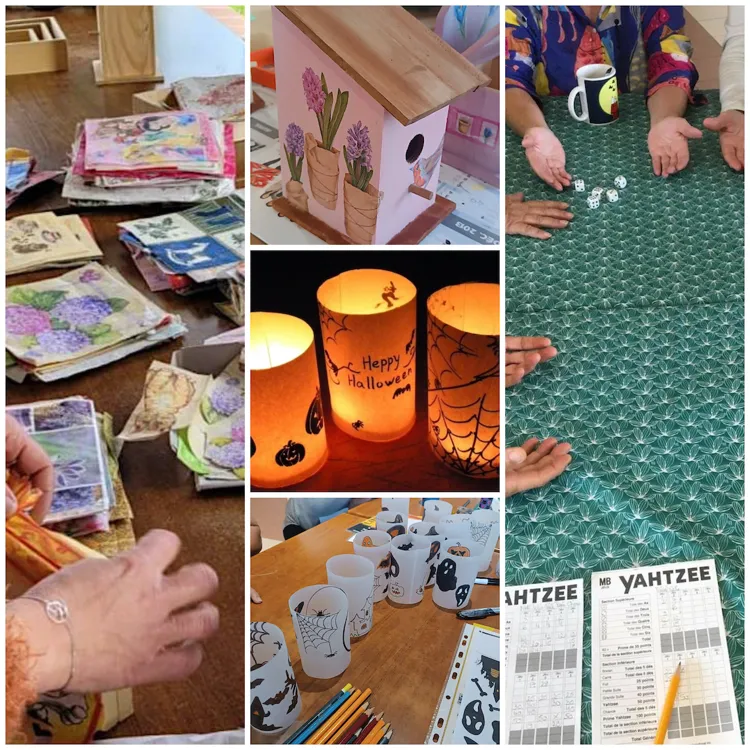Nombreux sont les plats cuisinés et dégustés ensemble : aïoli, empanadas, colombo de poulet, paella, samoussas, couscous, pâtes fraîches, galettes des rois, sablés, tiramisu... et nos ateliers créatifs : mobiles, Pâques, serviettage, déco tricot, origami, Halloween, Noël... Ci-dessous, juste un aperçu.
